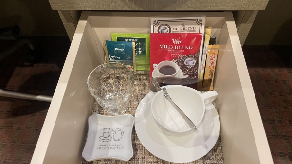 インスタントじゃなくてドリップコーヒー、紅茶のブランドが「Dilma」だったりするあたりも「ビジネスホテル1位」に輝いたホテルならではのこだわりと豪華さを感じられます。