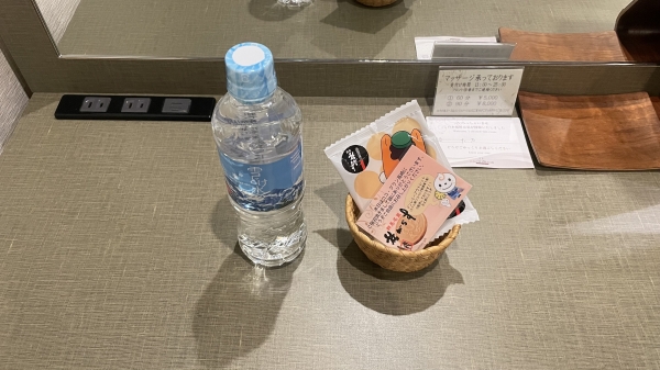 そして、サービスのお水とお菓子。
