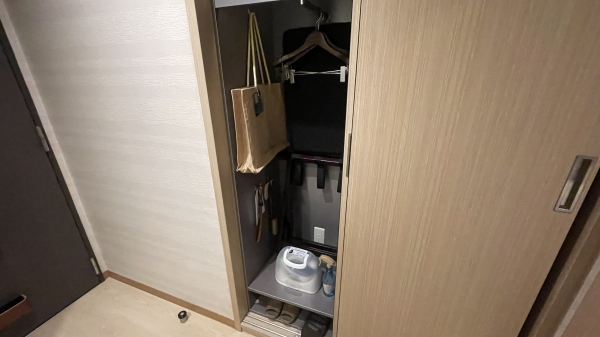 洋服を掛けるスペースの扉をスライドすると、