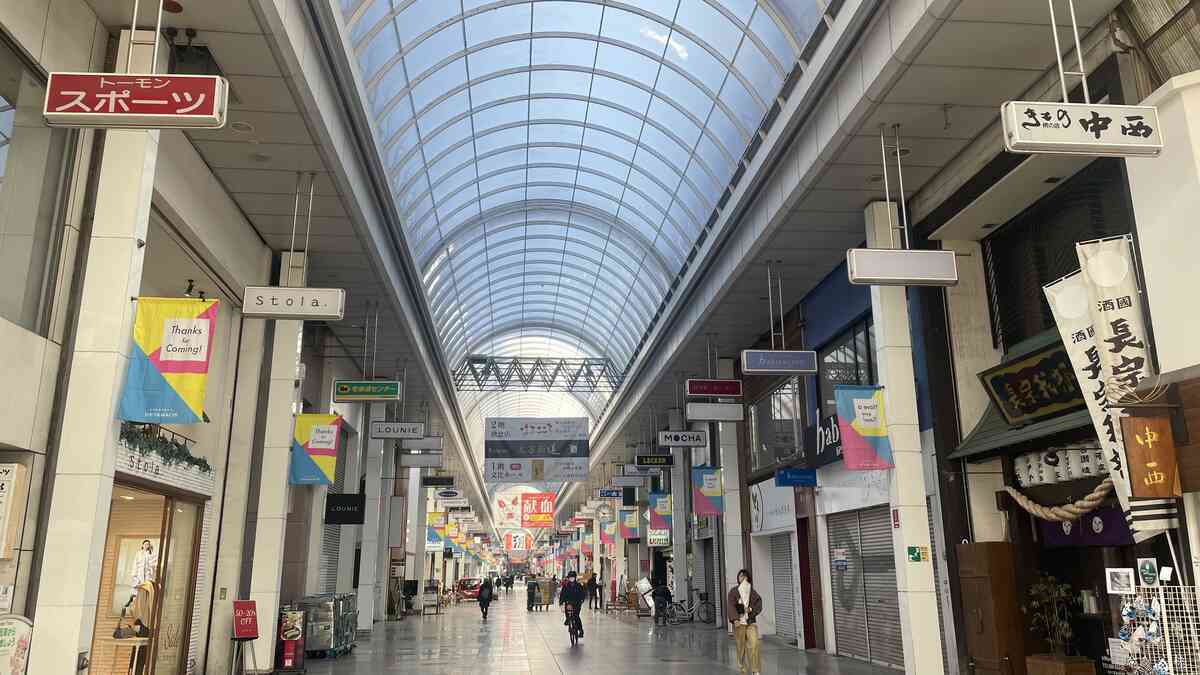 ホテルは帯屋町のアーケードに面しています