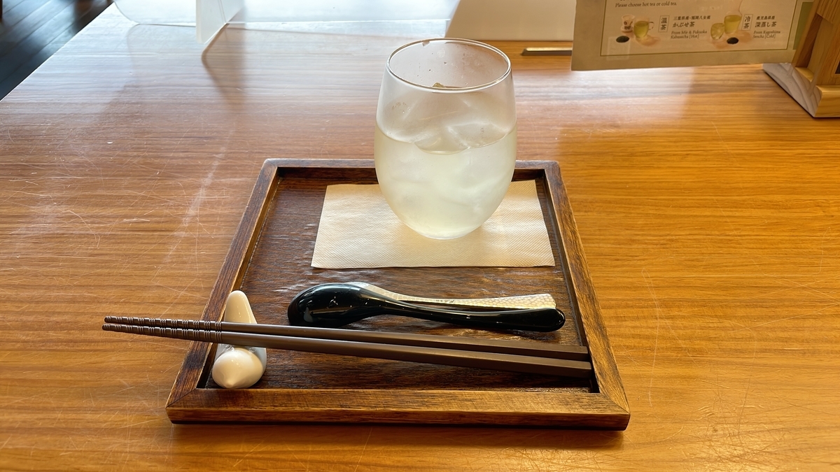 温茶か冷茶がセットになっているので、お茶を飲みながらご飯を待ちます。(提供されるまで少し時間がかかります)
