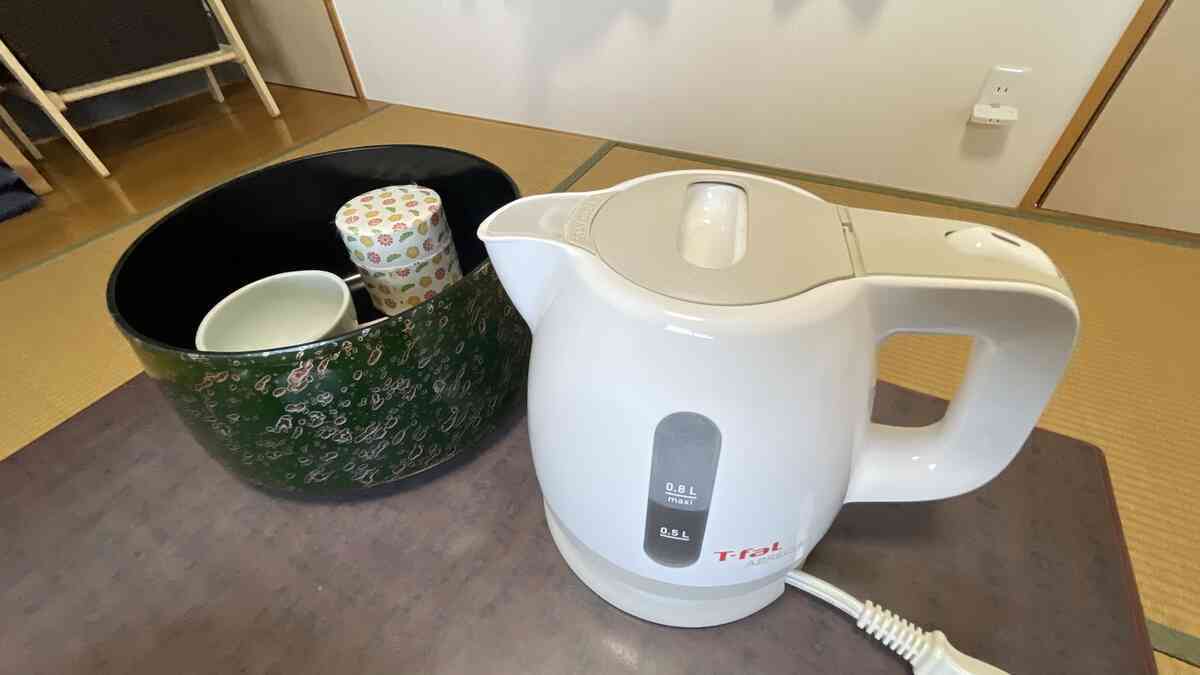 テーブルには電気ケトルと、お茶セットがあるのが旅館みたいです。