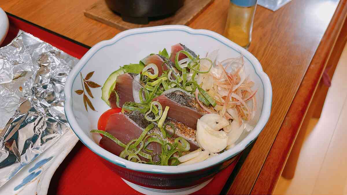 ひとり旅でも2食付きプランで泊まらせてくださり、ボリューム満点なカツオのたたきを食べられるのが嬉しすぎる!