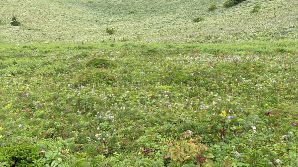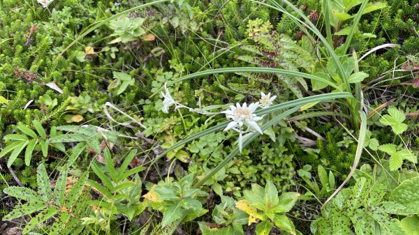 写真だと分かりにくいかもしれませんが、白い点々に見えるのがレブンウスユキソウです。