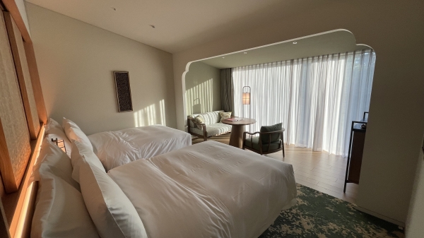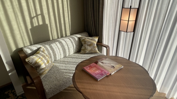 隈研吾さんの設計だそうで、洋室ではありますが和風の要素も感じられ落ち着いた素敵なお部屋です。
